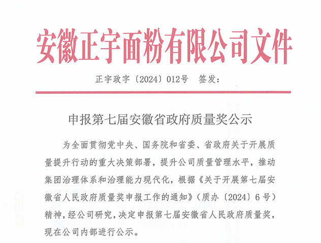 申報第七屆安徽省政府質量獎公示